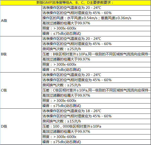 1、 GMP車間潔凈區(qū)潔凈度等級標準