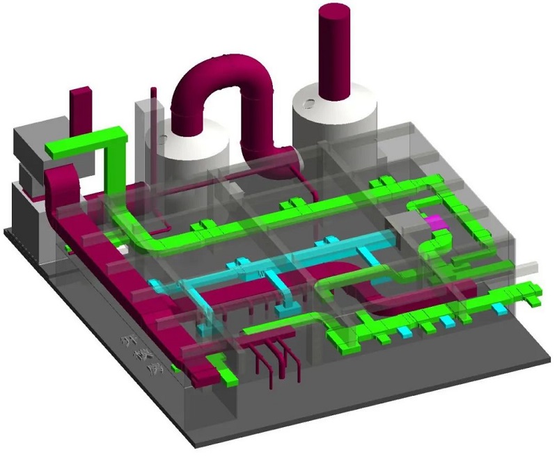 該項(xiàng)目位于廣州,工程涵蓋整棟廠房區(qū)域, 一樓、二樓和屋面等區(qū)域機(jī)電凈化工程,涉及到原1.74、高折線、固化爐、冷庫(kù)、冷凍站、空壓站、低壓電房等。