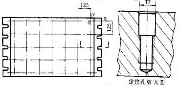 新工作臺面完成后,用加工中心加工一組定位夾緊孔??装匆欢ㄒ?guī)律排列,第一個孔在工作臺平面坐標零點,其余孔向著坐標的負方向排列,相鄰孔間距離相等??拙嘣O(shè)定考慮以下條件: