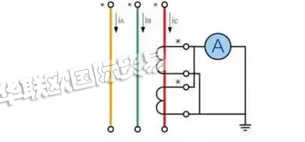電流互感器原邊串聯(lián)、副邊并聯(lián)接線圖,如上圖所示。