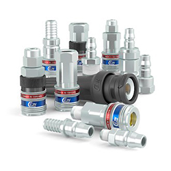 ①DN 10.4毫米(13/32英寸)。流量為3950 l/min(139.4 CFM)。最大工作壓力為35 bar(508 PSI)。由鍍鋅鋼/黃銅制成。自動(dòng)安全鎖定功能可防止意外斷開。