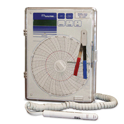 圓形溫度圖表記錄儀的外部不銹鋼探頭可讓您測(cè)量空氣、氣體、液體和半固體的溫度。溫度圖表記錄器具有石英鐘機(jī)芯、電動(dòng)圖表前進(jìn)和±2°F(±1°C)的溫度精度。圖表記錄儀提供°F或°C型號(hào),并在120V或220V AC、50/60 Hz下運(yùn)行。后艙裝有8節(jié)AA堿性電池,可在暫時(shí)斷電的情況下提供長(zhǎng)達(dá)48小時(shí)的連續(xù)錄音。當(dāng)前溫度可在圖表記錄器的大型LED顯示屏上輕松讀取,而永久記錄可在紙質(zhì)圖表上進(jìn)行追蹤。圖表和筆都可以輕松更換。