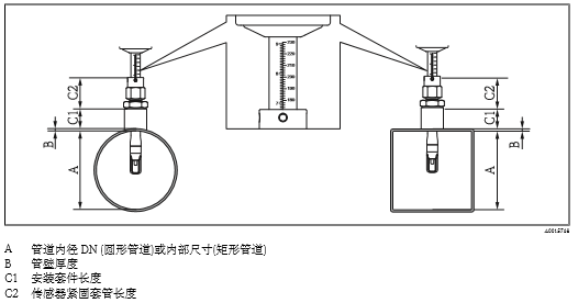 選擇傳感器長度:傳感器的最小長度取決于所需插入深度。所需插入深度的計算值必須在相應的插入式傳感器的可調 節(jié)范圍內。