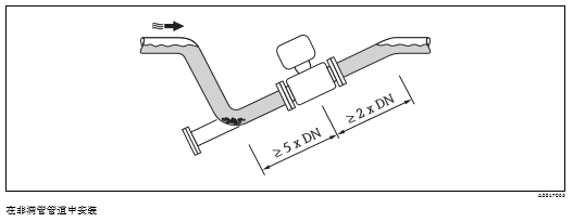 水平管道 在水平管道中安裝時(shí),測(cè)量電極軸必須保持水平,防止夾雜的氣泡導(dǎo)致兩個(gè)測(cè)量電極間出現(xiàn)短時(shí) 間絕緣。