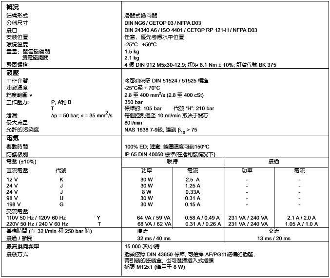 PARKER換向閥DEVW系列產(chǎn)品技術(shù)參數(shù):
