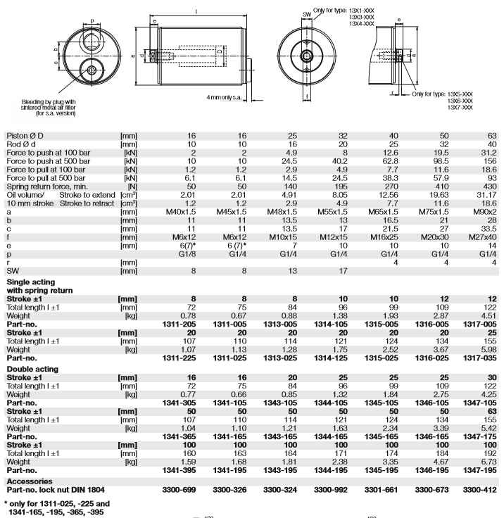 ROEMHELD螺紋通用汽缸有單干和雙桿作用,最大工作壓力500 bar,應(yīng)用螺紋體通用氣瓶可用作工件夾緊用夾緊氣缸以及一般夾持任務(wù)。 對(duì)于超過(guò)100°C的溫度,可提供帶VITON®密封件的型號(hào)。 在帶有2個(gè)鎖緊螺母或帶1個(gè)鎖緊螺母的螺紋孔的十字孔上進(jìn)行固定。 鎖緊螺母允許氣缸在軸向上精確定位。